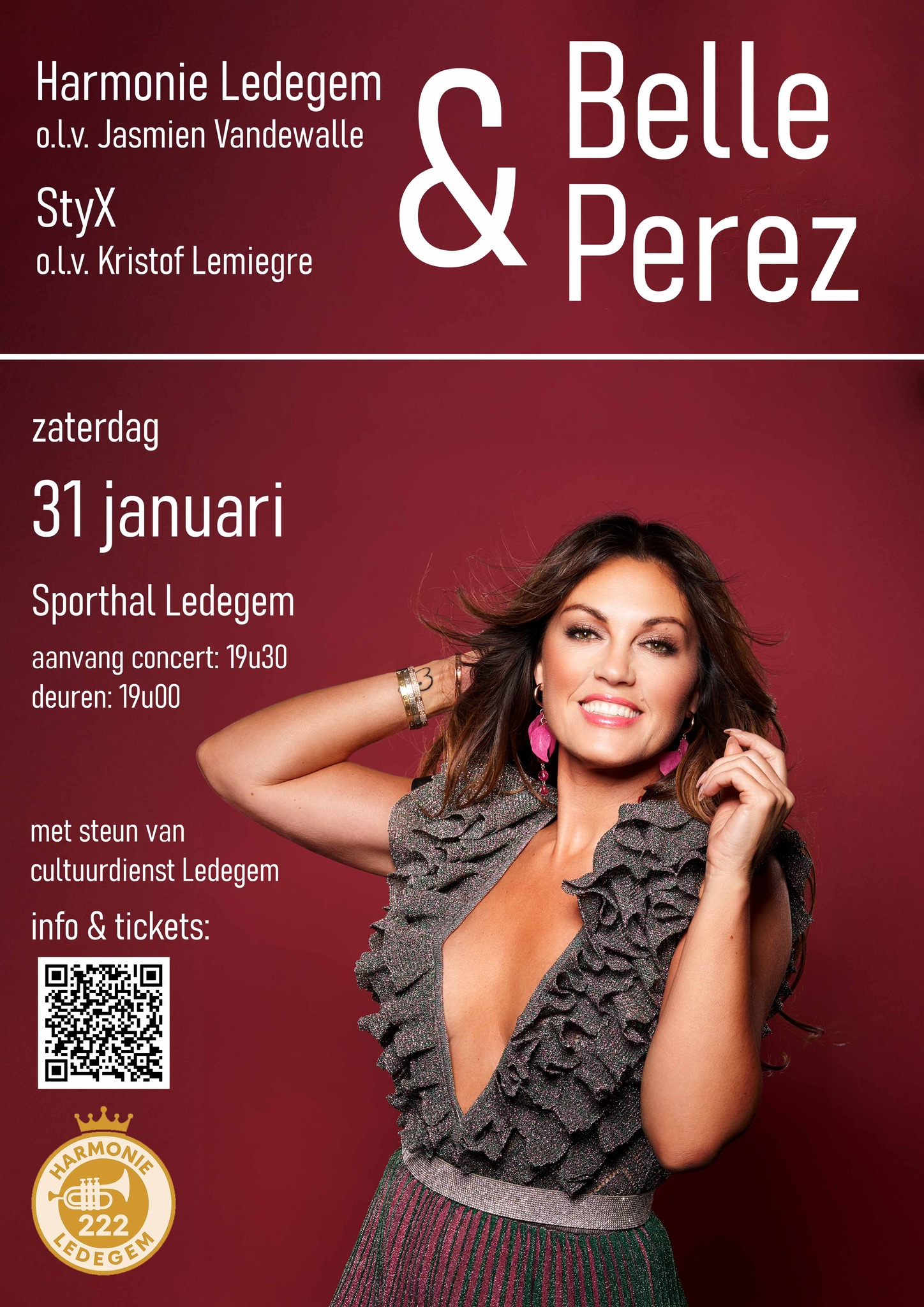 Ook zin in een gevarieerde, sfeervolle en muzikale avond? Kom dan zeker op zaterdag 31 januari 2026 naar de Sporthal in Ledegem. Tickets zijn te verkrijgen door de QR-code op de affiche in te scannen of op deze link te klikken: https://shop.stamhoofd.be/jubileumconcert-met-belle-perez